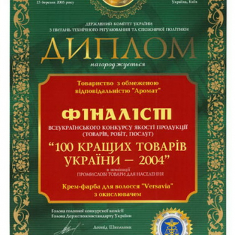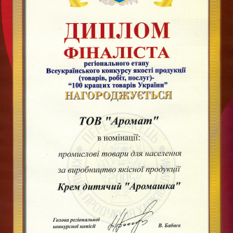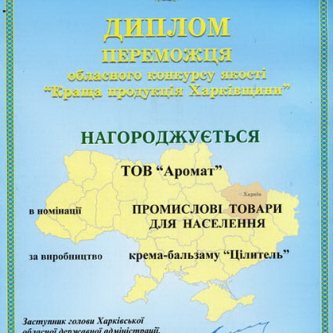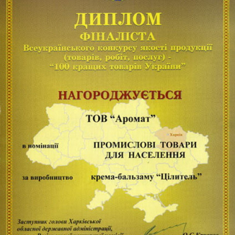 - Дипломи Всеукраїнського конкурсу "100 кращих товарів України".