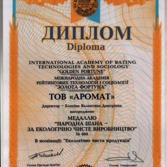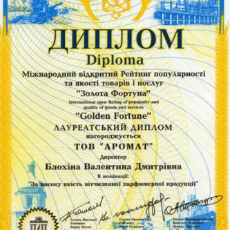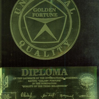 - Диплом Міжнародного відкритого рейтингу популярності та якості товарів і послуг "Золота Фортуна".